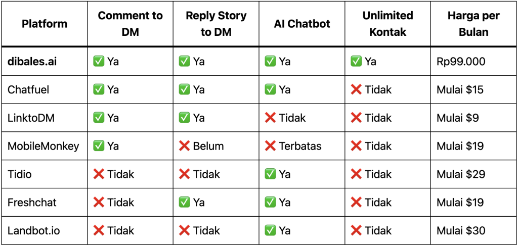 Dengan harga terjangkau dan fitur paling sering dipakai user ManyChat Indonesia,